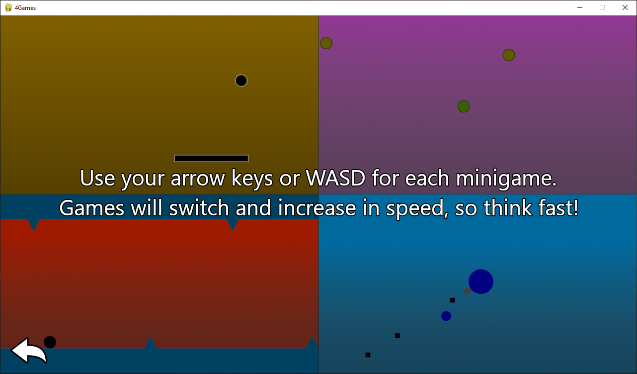 - Each minigame is able to be controlled using only WASD or arrow keys.